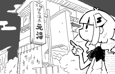 なんと近所に温泉があるらしいという情報を得た私たちは、マップに従って歩いていく。